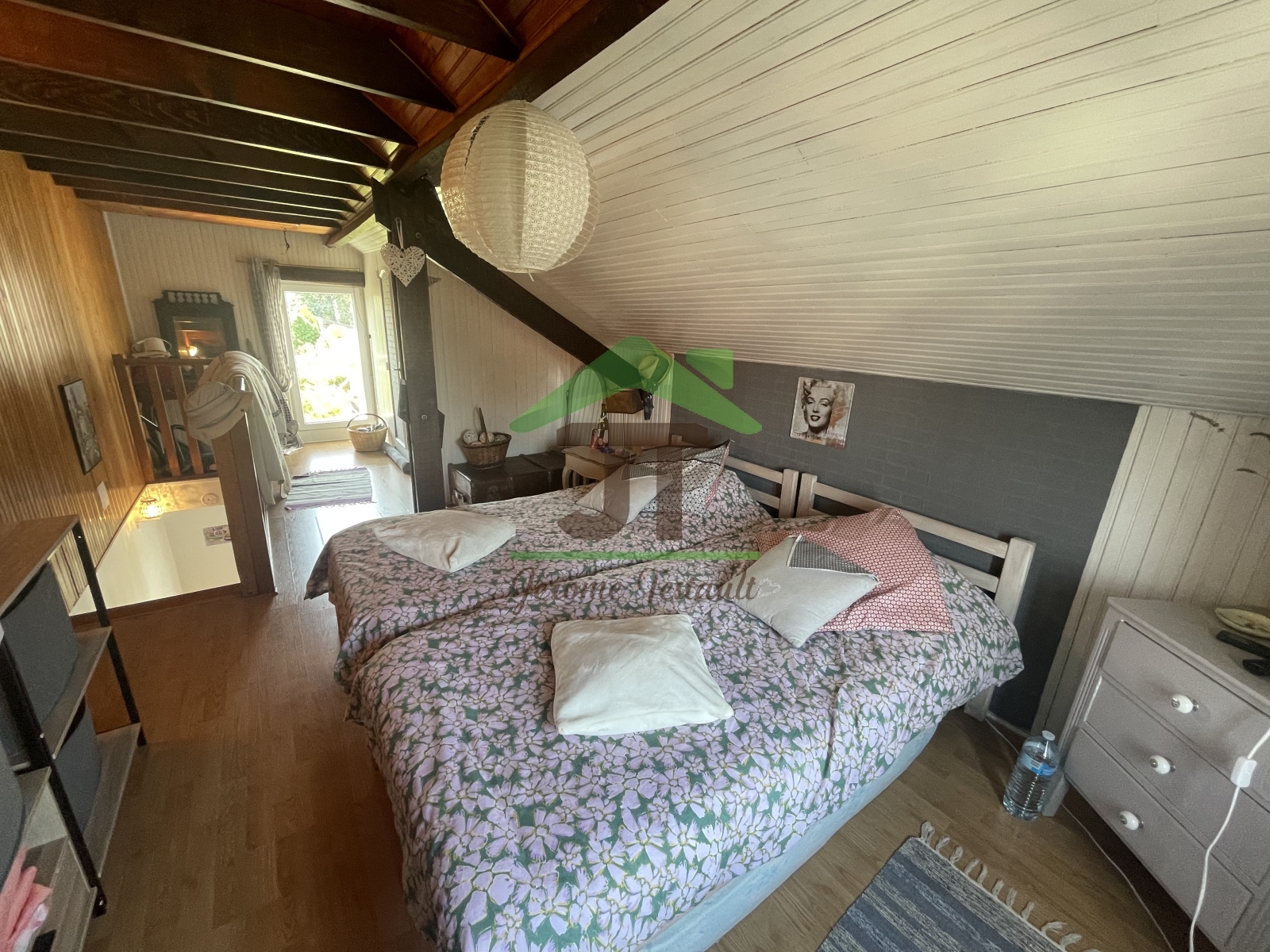 A l'étage vous disposerez d'une chambre en mezzanine et un second WC avec un lave-mains.