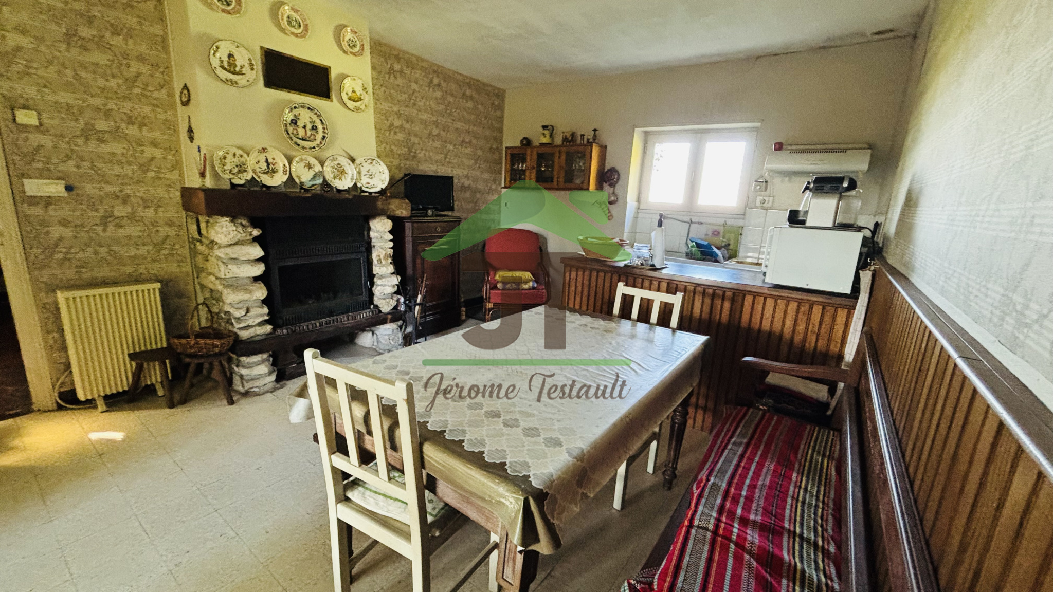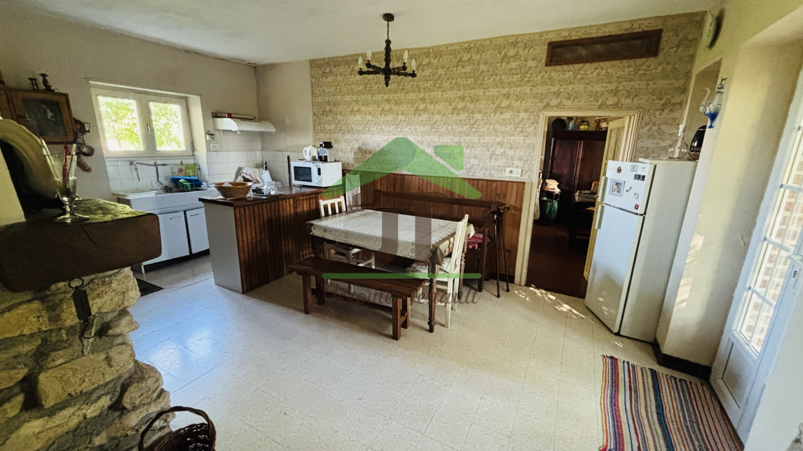 Une cuisine spacieuse de 18 m² avec cheminée et cave