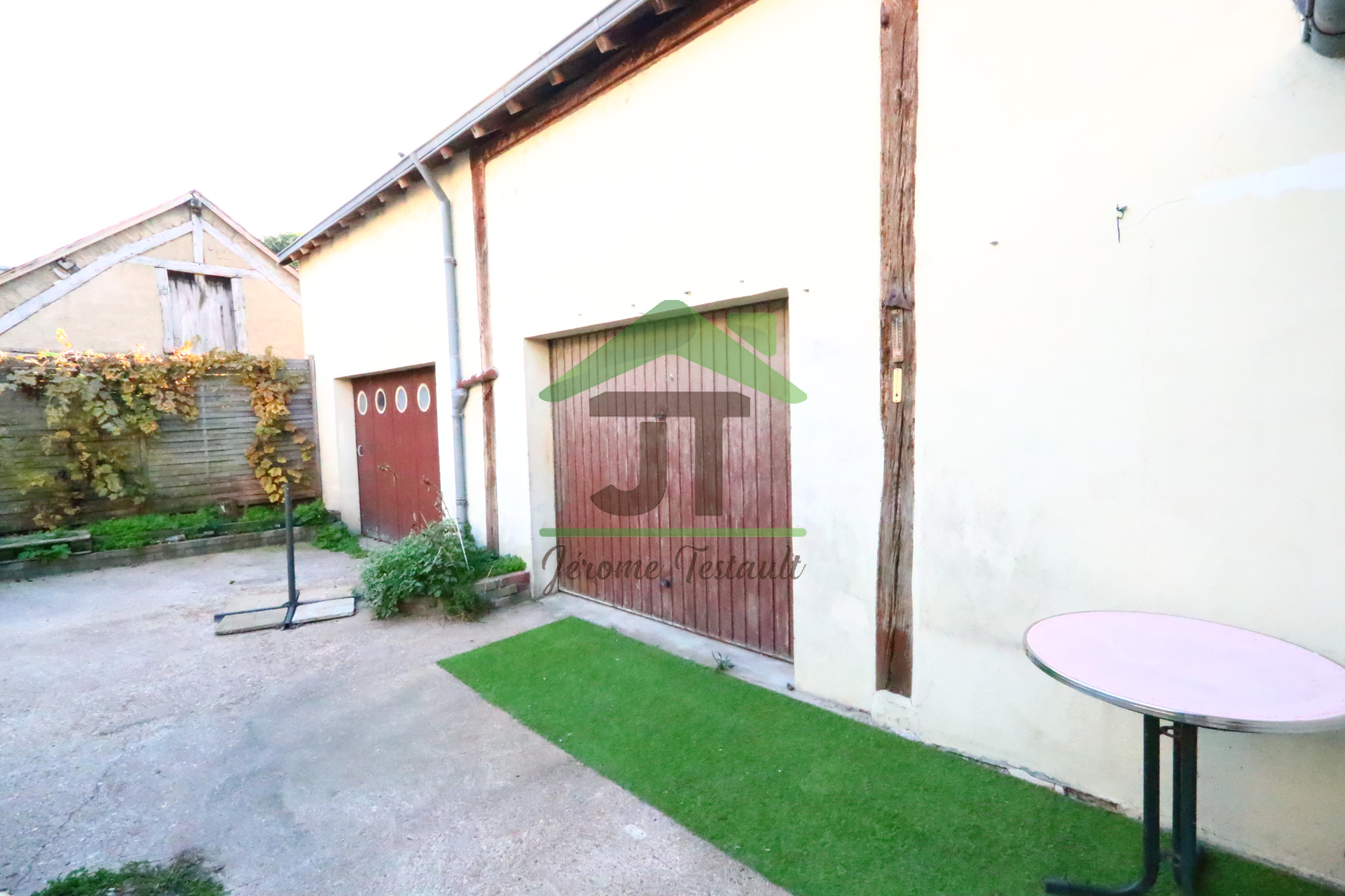 L'habitation donne accès à deux garages de 26m² et 48m² et une cave.