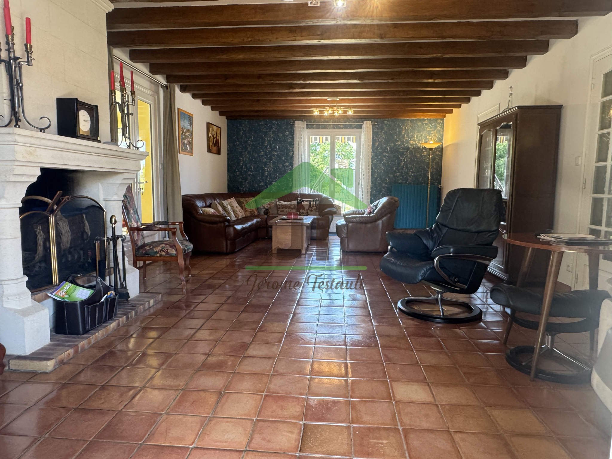 Salon-séjour lumineux avec cheminée
