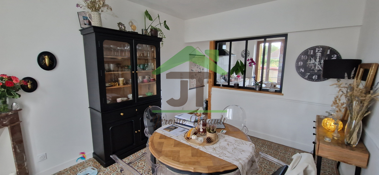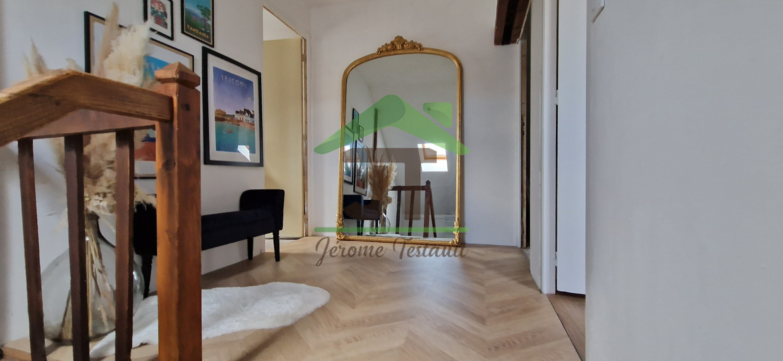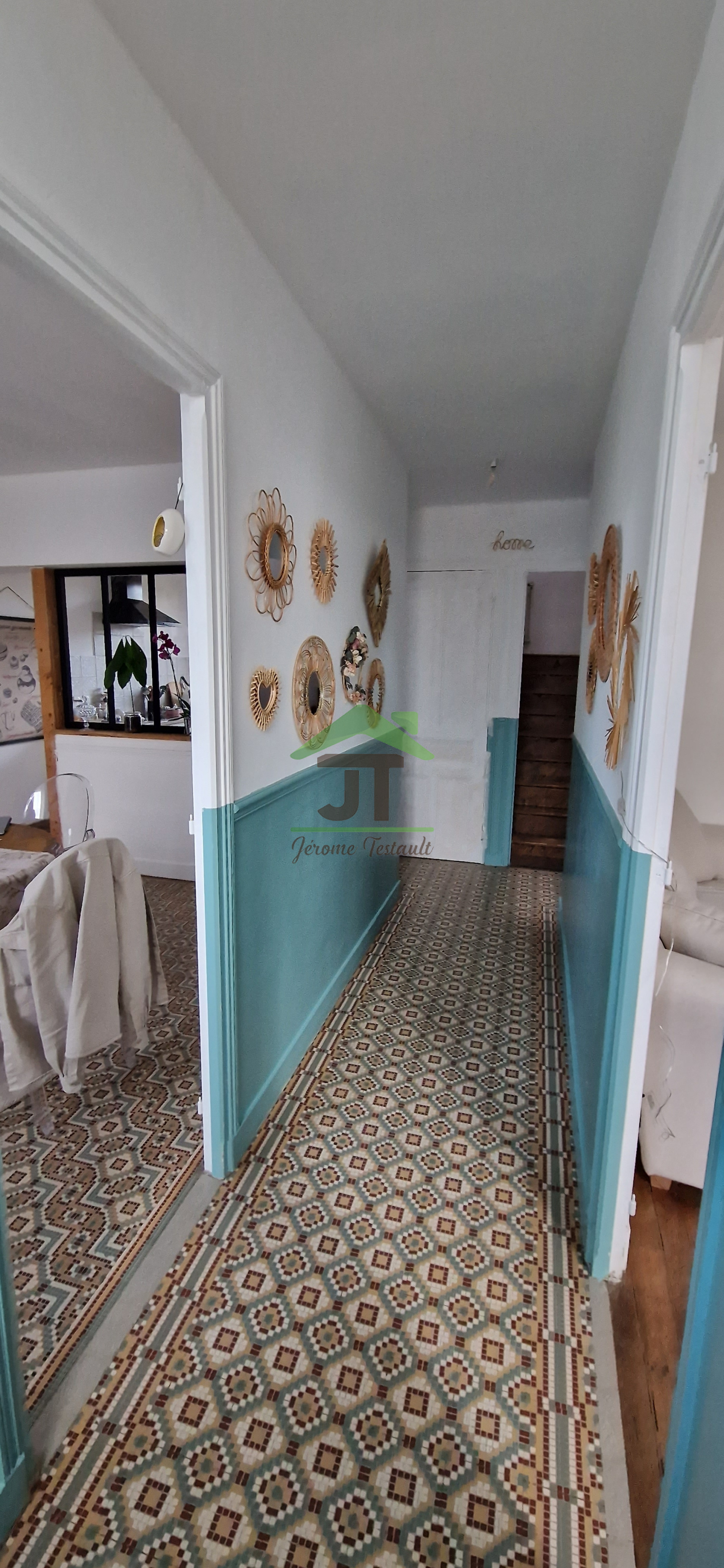 - Rez-de-chaussée : 2 chambres parquetées, salle à manger ouverte sur la cuisine, et WC