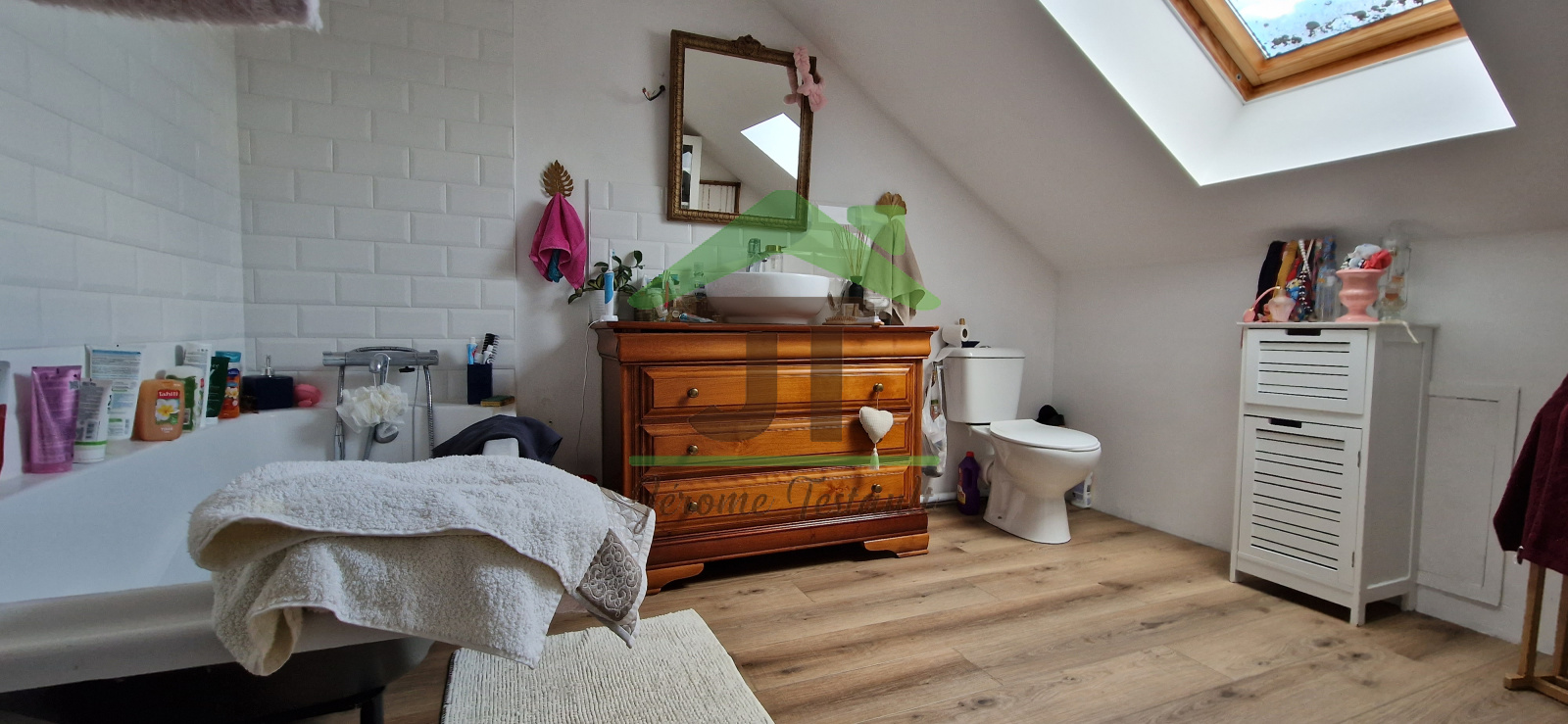 - 1er étage : salle de bain WC, 2 greniers isolés pouvant être aménagés
