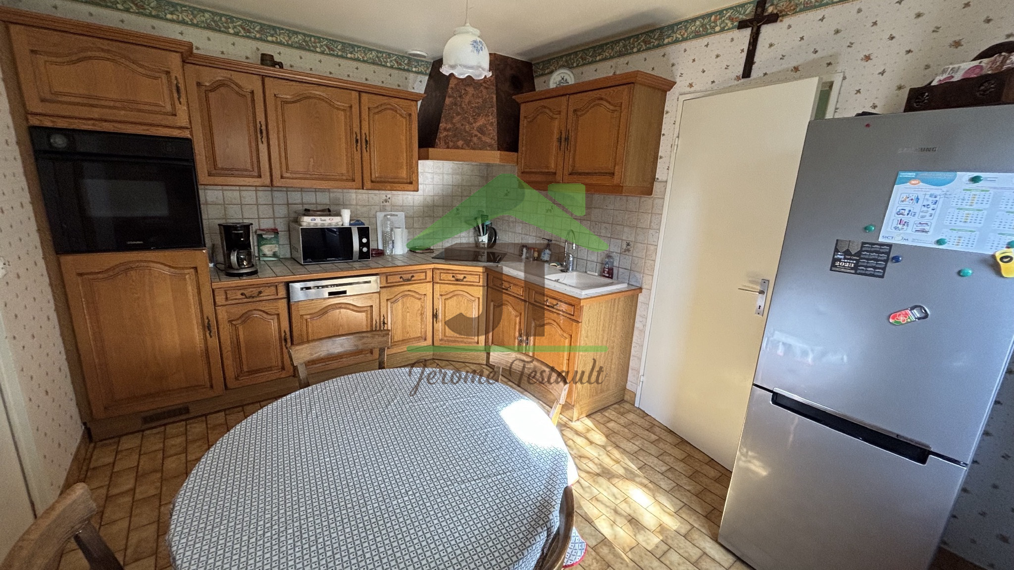 Elle comprend une entrée, un spacieux séjour de plus de 31 m² avec cheminée, une cuisine séparée et équipée, trois chambres, une salle de bains et un WC indépendant.