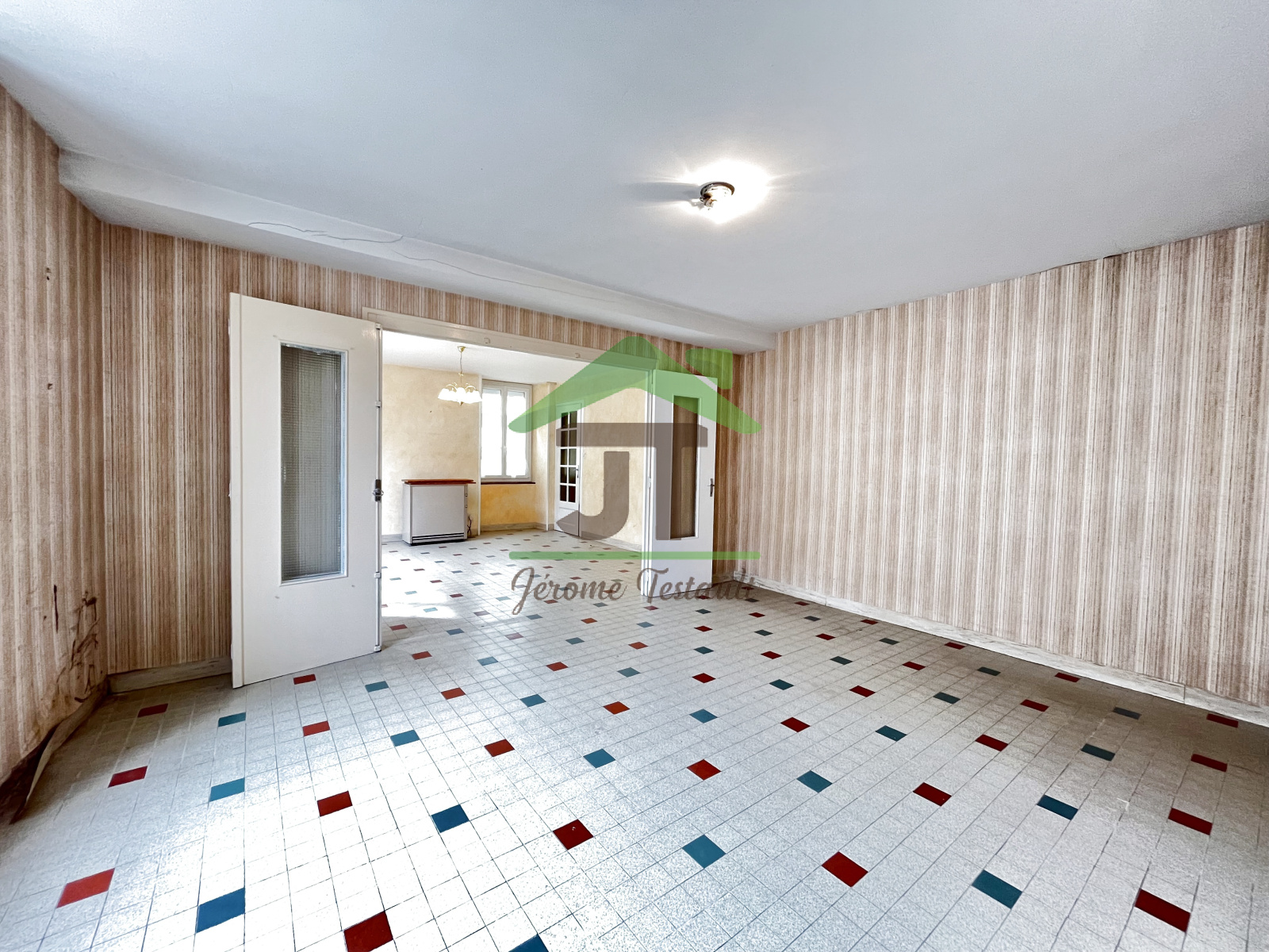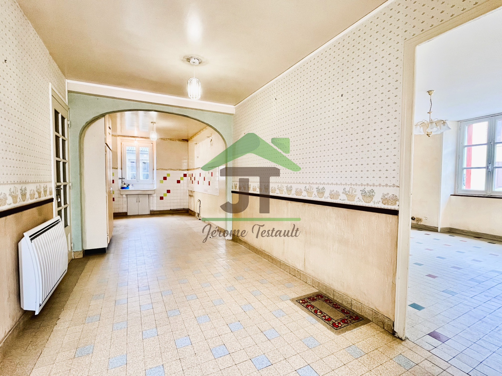 La maison de 121 m2, à rénover, vous fera profiter au RDC d'une cuisine de 20 m2, d'un salon-séjour d'environ 37 m2 et d'une salle d'eau avec toilette.