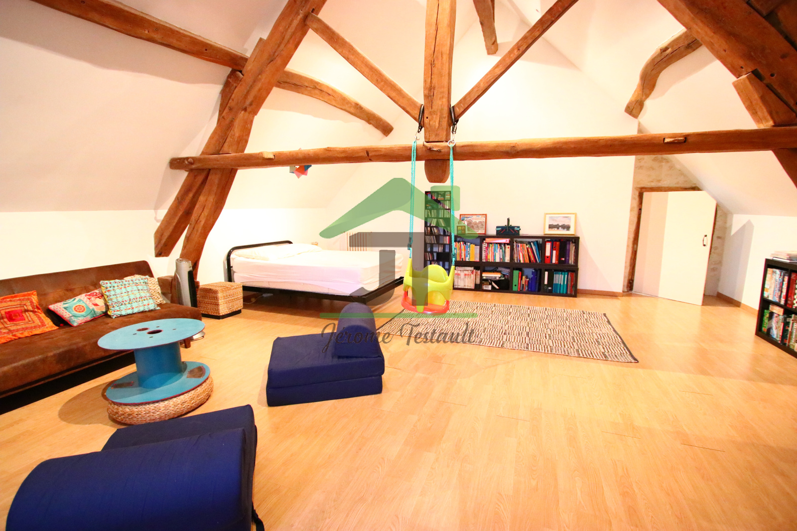 - Au 1ème ÉTAGE : une mezzanine de 28m2 pouvant servir d'espace télétravail ou coin détente, une immense chambre de 36m2.